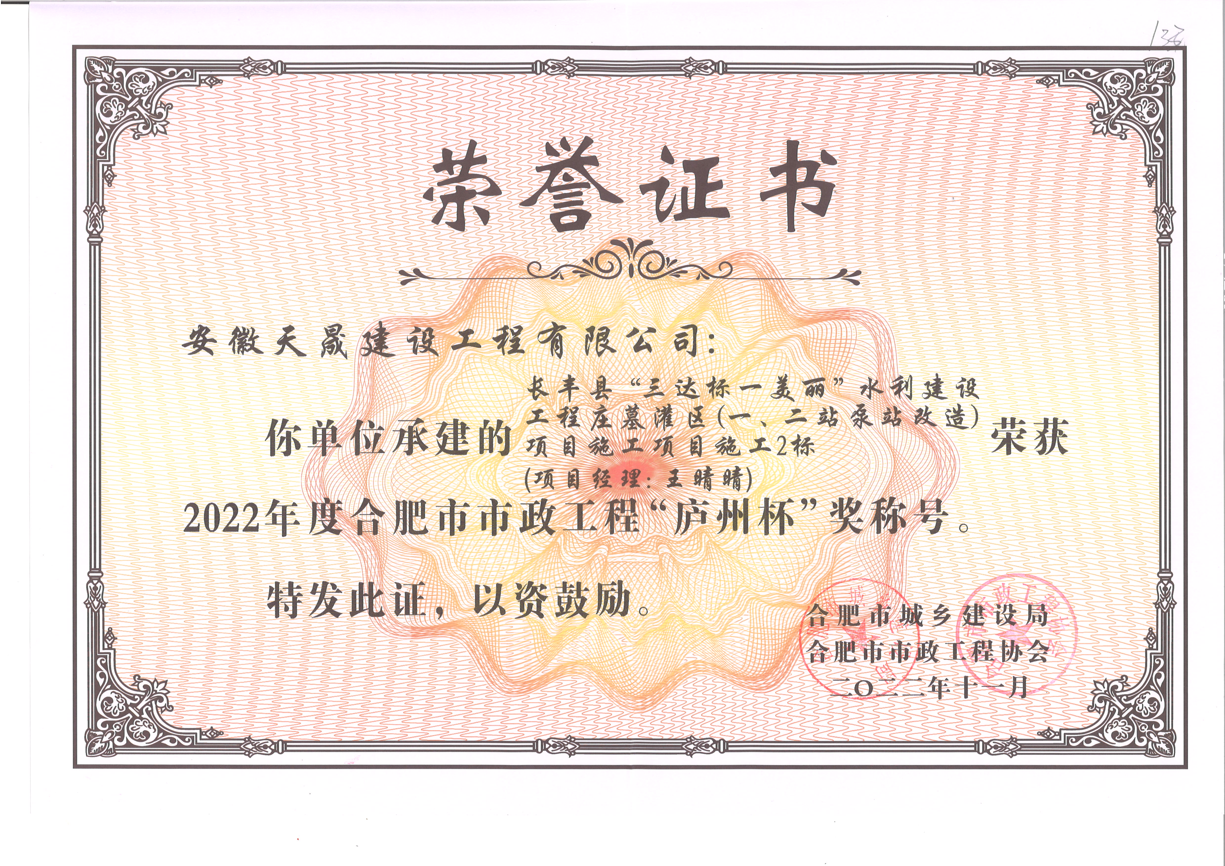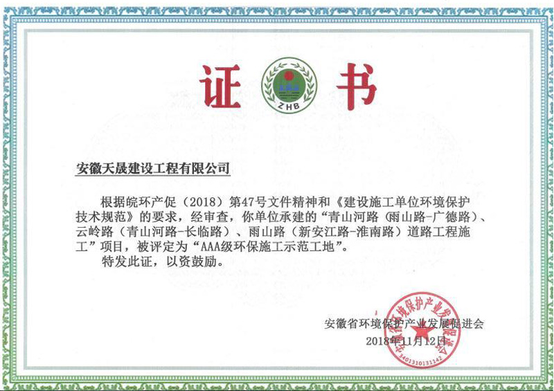 公司擁有市政公用工程施工總承包一級、水利水電工程施工總承包二級、房屋建筑施工總承包二級、公路工程施工總承包二級、機電工程總承包二級、裝飾裝修設計與施工一體化二級、環保工程專業承包三級、城市園林綠化三級